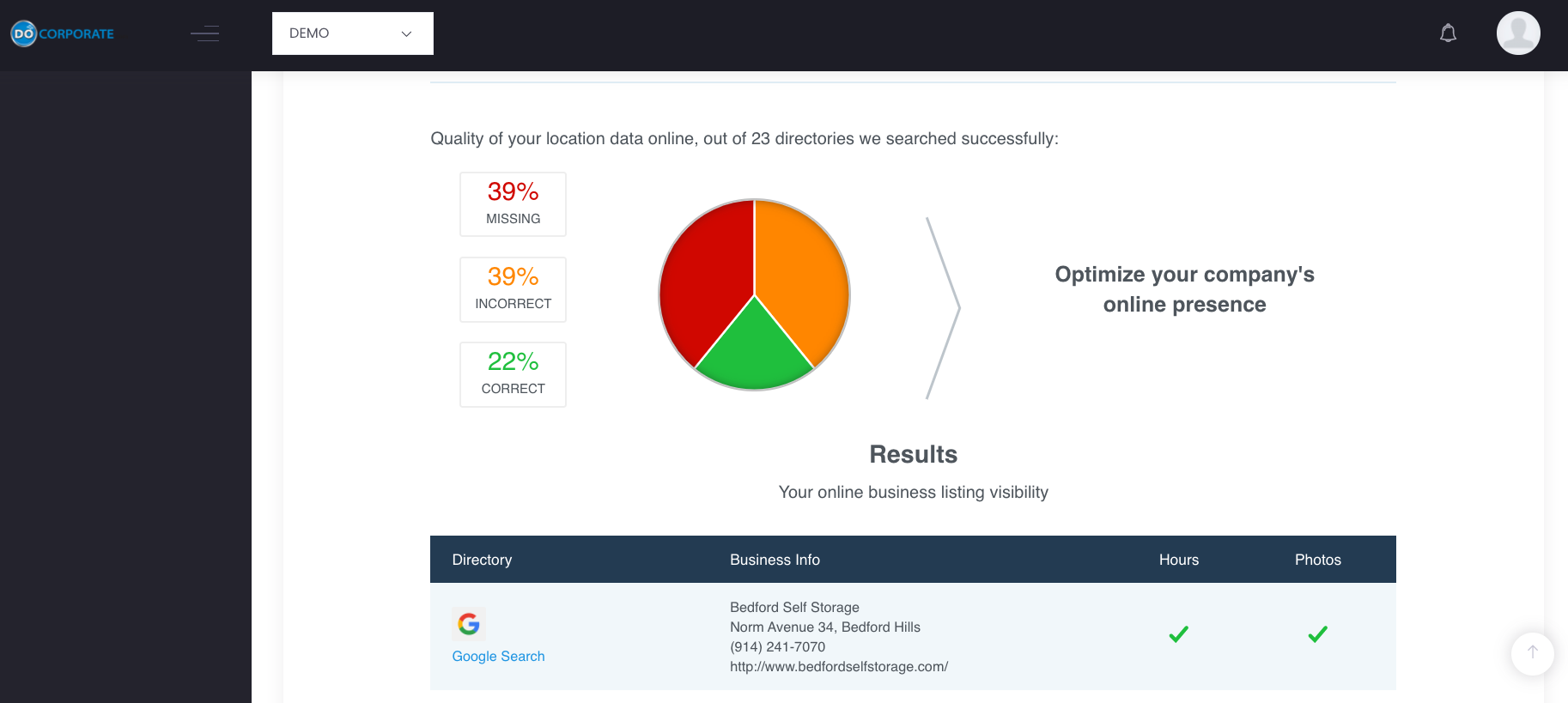 Directory listings management boosts your Google search ranking through effective citation building, and ensures your business data is available, consistent, and correct across all platforms and directories. Get your business listed and claimed across Google, Bing, Yahoo, Yelp, YP, and many more.